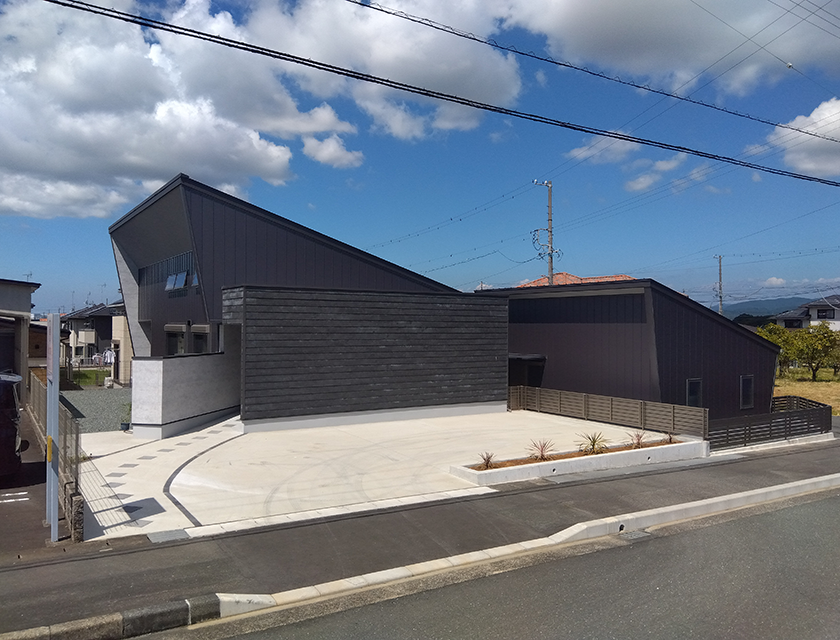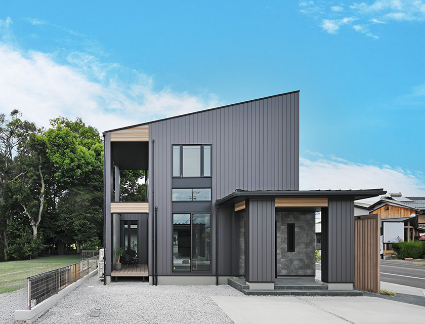 外壁とのコントラストが美しいブラックカラーの屋根