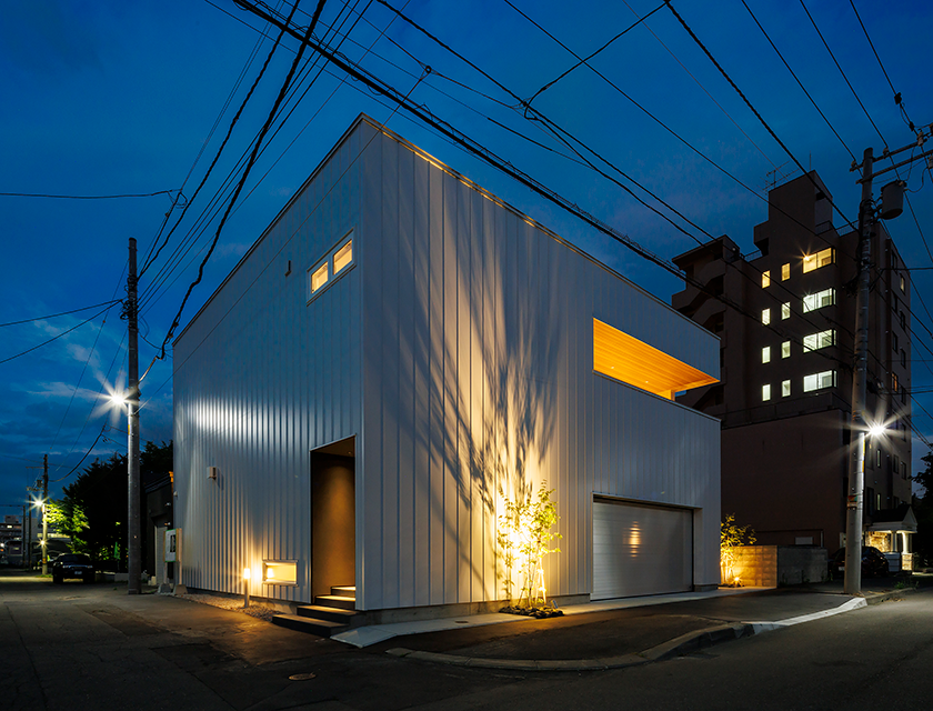 灯りが際立つ、白のフォルム