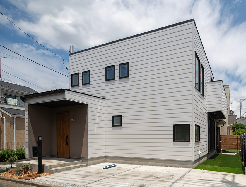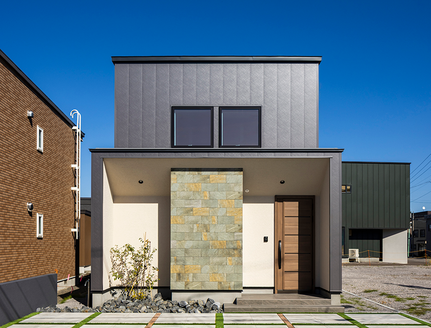 上品な色合いと真っすぐ伸びるフラットデザインで、趣のあるお家