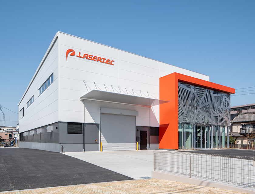 ホワイト色に現場塗装のブルー色が映える爽やかなデザインの工場